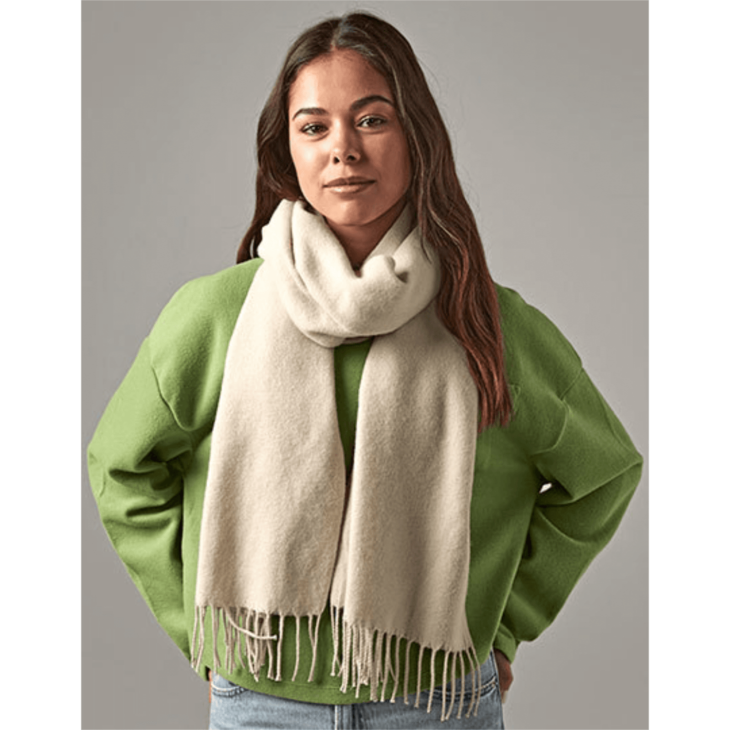 - Zeitloses Design: Der klassische Web-Look und der feine Fransenbesatz an den Enden verleihen dem Schal eine elegante Note.
