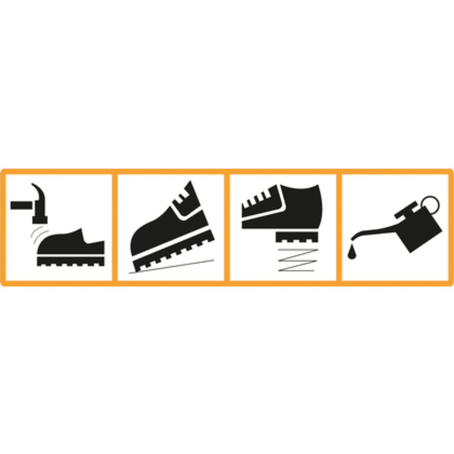 Trotz seines sportlichen Äusseren bietet der Schuh guten Schutz. Eine robuste Zehenschutzkappe und eine flexible, durchtrittsichere Sohle schützen zuverlässig vor mechanischen Gefahren. Das geringe Gewicht und die stossdämpfende Konstruktion sorgen dafür, dass Ihre Füsse auch nach langen Schichten geschont und entlastet werden. Der All Black ist der Beweis, dass Arbeitssicherheit nicht auf Kosten von Stil und Komfort gehen muss.